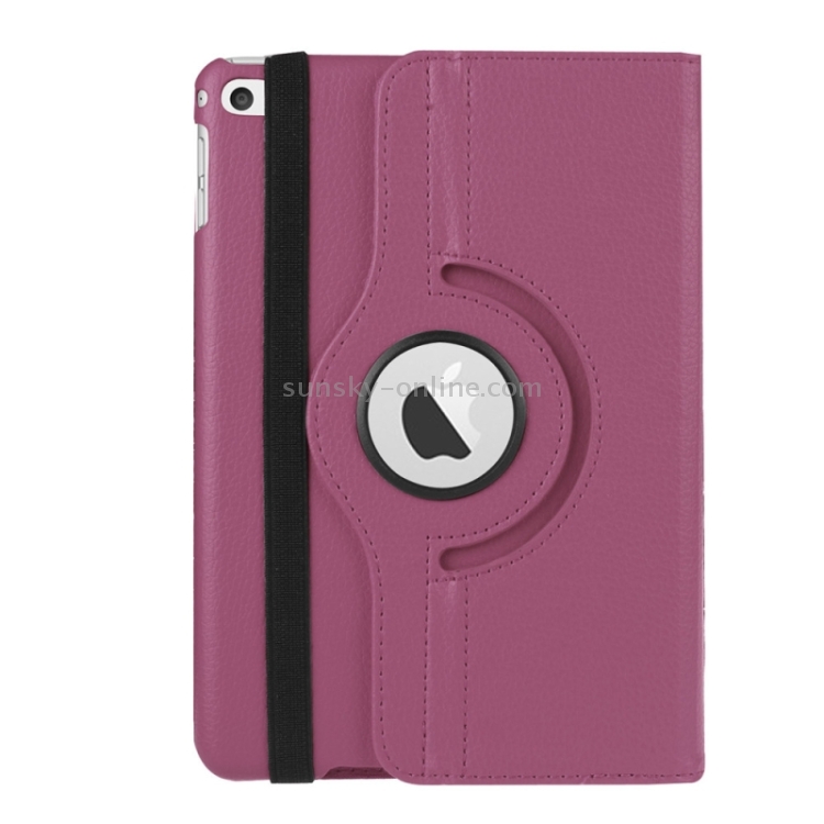 Funda de Cuero Inteligente Litchi Texture Giratoria 360 Grados con Soporte para iPad Mini 4 / Mini 5 (Morado)