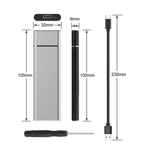 Carcasa SSD M.2 NGFF a USB-C Type-C USB 3.1 Interfaz Aleación de Aluminio (Plateado)