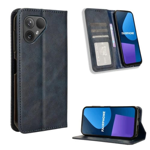 Funda para Fairphone 5 Cuero Textura Retro Hebilla Magnética (Azul)