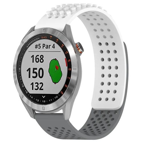 Correa de Reloj Garmin Approach S40 Silicona Puntos 3D Transpirables Orificios 20mm (Blanco + Gris)