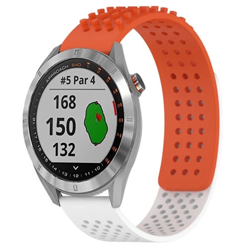 Correa de Reloj Garmin Approach S40 Silicona Puntos 3D Transpirables Orificios 20mm (Naranja + Blanco)