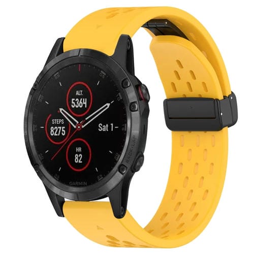 Correa de Reloj de Silicona para Garmin Fenix 5 Plus con Orificio y Hebilla Plegable 22mm (Amarillo)