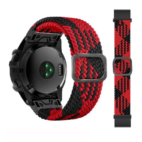 Correa de Reloj para Garmin Fenix 7 de Nailon Trenzado Ajustable (Rojo Negro)