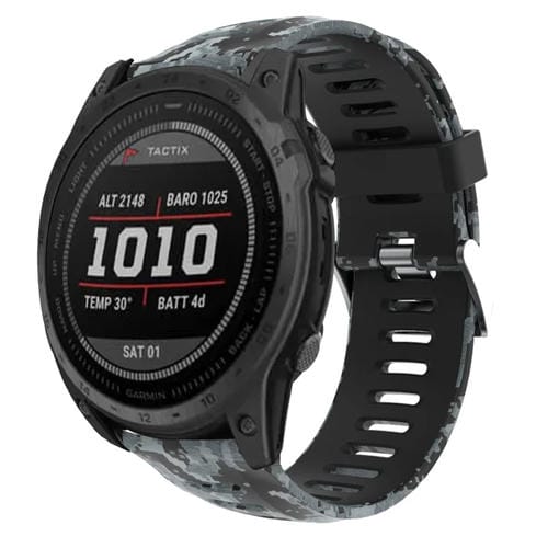 Correa de Reloj Garmin Fenix 7 Pro 51mm Silicona Estampado Camuflaje (Negro + Camuflaje Digital)