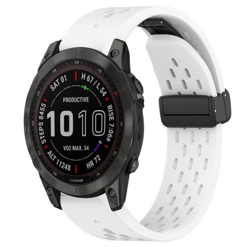 Correa de Reloj Garmin Fenix 7 Sapphire Solar 22mm silicona con orificio y hebilla plegable (Blanco)