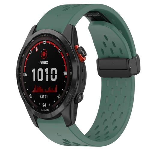 Correa de Reloj Garmin Fenix 7 Solar 22mm Silicona con Orificio y Hebilla Plegable (Verde Oscuro)