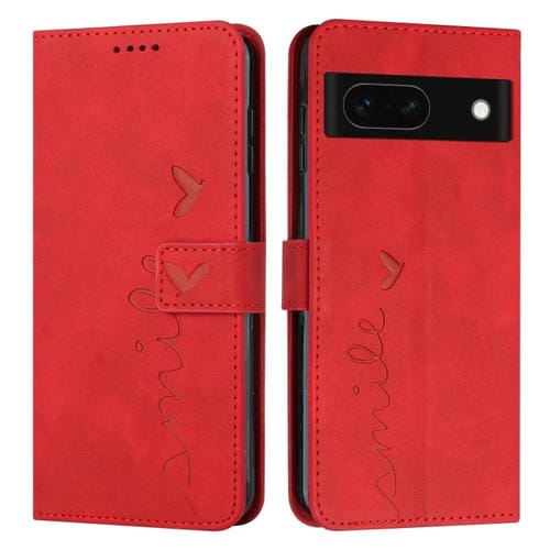 Funda para Google Pixel 8A Skin Feel Heart de Cuero en Relieve con Cordón Largo (Rojo)