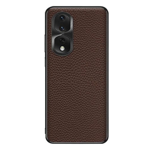 Funda de Teléfono Honor 80 Pro Cuero Genuino Textura Litchi (Café)