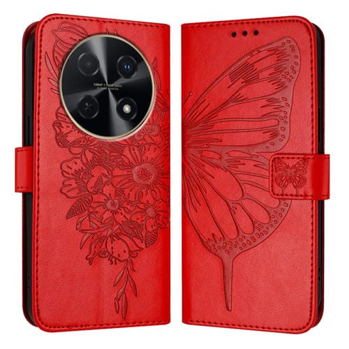 Funda de Cuero para Huawei Nova 12I 4G con Mariposa en Relieve (Rojo)