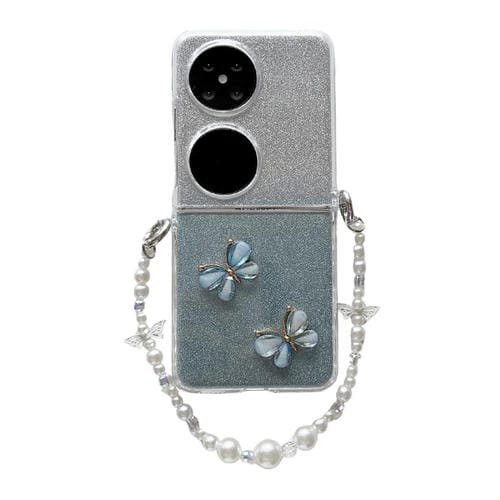 6. La hermosa caja de PC con polvo de brillo degradado con hebilla lateral tiene un patrón de mariposa 3D y un diseño de pulsera de perlas.