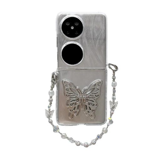 Funda para Huawei P50 (Mariposa 3D) PC Hebilla Lateral Cobertura Total a Prueba de Golpes con Pulsera