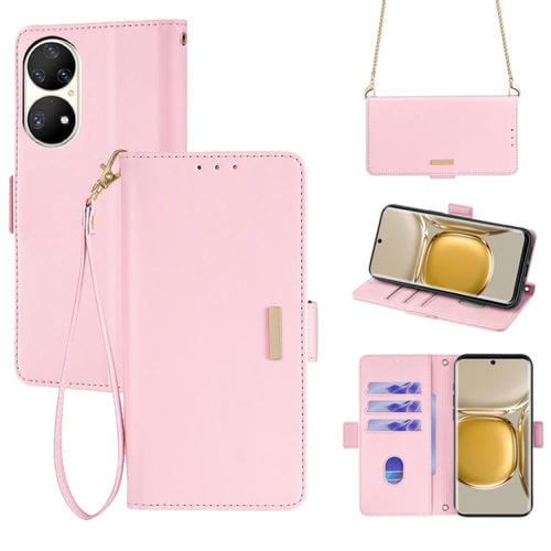 Funda de Cuero para Huawei P50 Pro con Cadena Cruzada (Rosa)