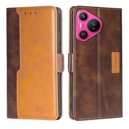 Funda de Cuero para Huawei Pura 70 5G con Hebilla Lateral (Marrón Oscuro + Dorado)