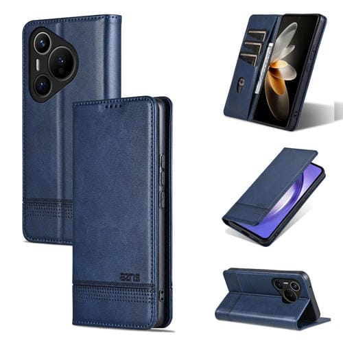Funda para Huawei Pura 70 de Cuero con Tapa Magnética y Textura de Pantorrilla (Azul Oscuro)
