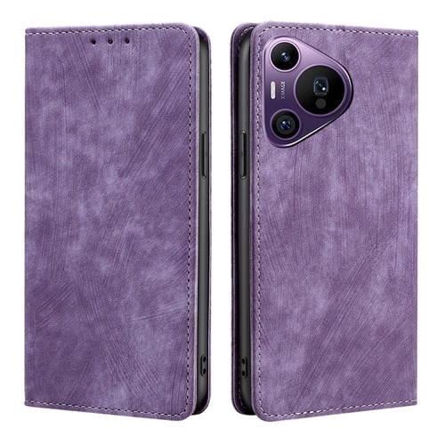 Estuche para Huawei Pura 70 Pro y Pro+ de Cuero Magnético con Cepillo Antirrobo Rfid (Púrpura)