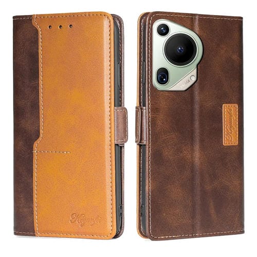 Funda de Cuero para Huawei Pura 70 Ultra 5G con Hebilla Lateral (Marrón Oscuro + Dorado)