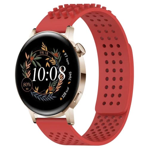 Correa de Silicona para Huawei Watch GT3 42mm 20mm con Orificios y Puntos 3D Transpirables (Rojo)