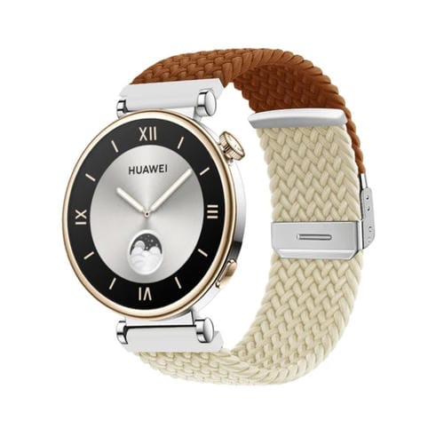 For Huawei Watch GT4 41mm Braided Nylon Watch Band with Built-in Buckle (Brown+Starlight)