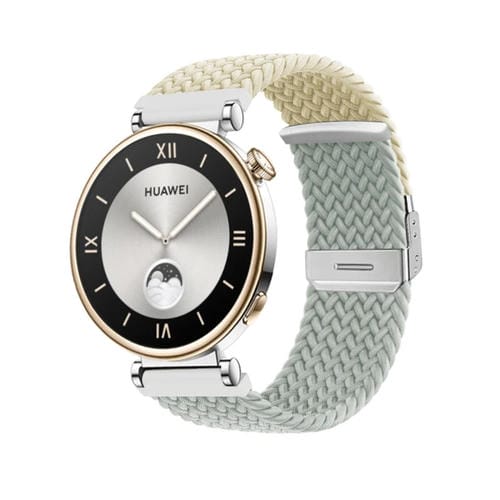 For Huawei Watch GT4 41mm Braided Nylon Watch Band with Built-in Buckle (Starlight + Light Grey)