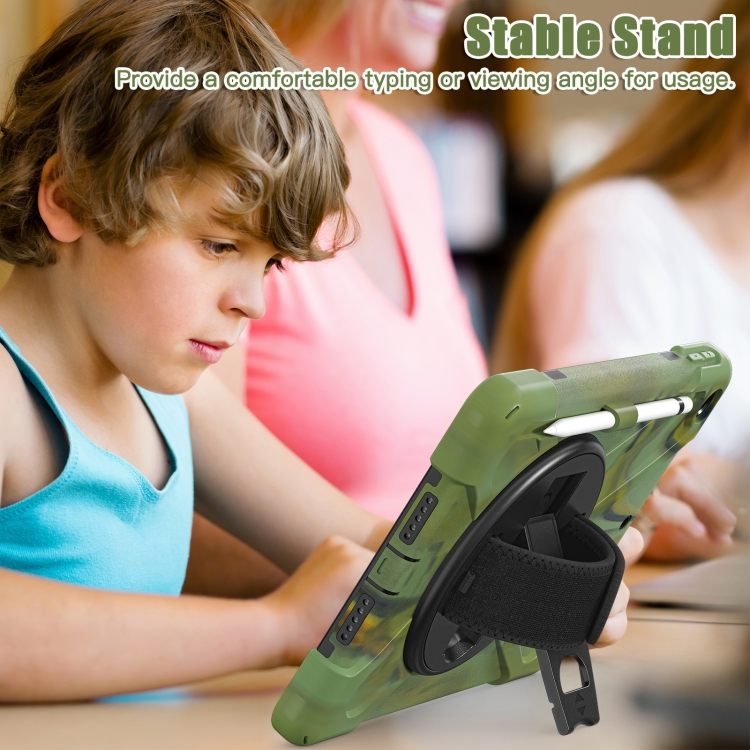 Funda Protectora para iPad 10.2 2021 / 2020 / 2019 Silicona + PC con Soporte y Correa (Camuflaje)