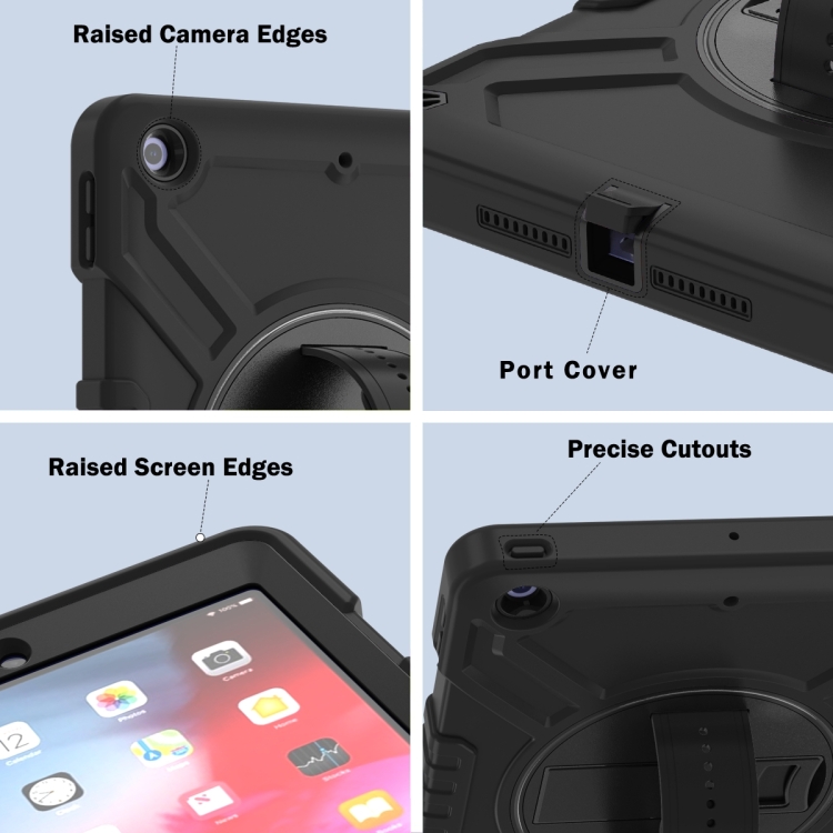Funda para Tableta iPad Air Air 2 9.7 (2018 2017) Silicona Híbrida Rotación Correa (Negro)