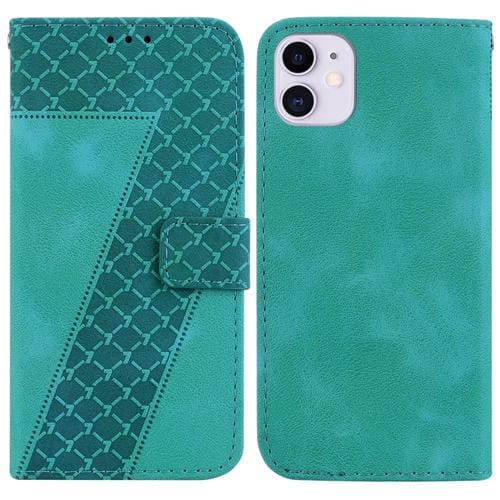 Funda de Teléfono iPhone 11 Cuero En Relieve En Forma de 7 (Verde)