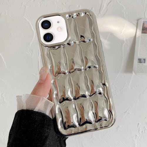 For iPhone 11 3D Grid Texture TPU Phone Case (Silver)