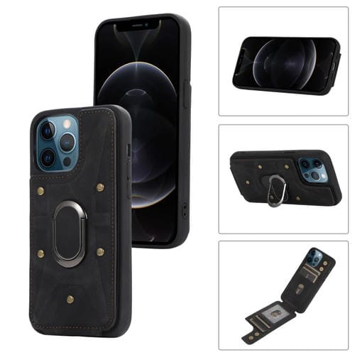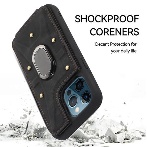 Funda para iPhone 12 Pro Max Armor Ring Wallet Back Cover (Negro)