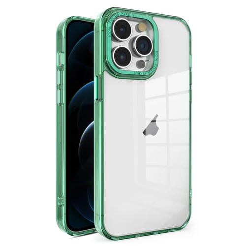 Funda para iPhone 12 Pro Max Crystal TPU + PC con Marco de Lente Galvanizada (Verde)