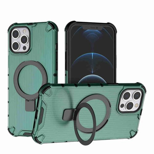 Funda para Teléfono iPhone 12 Pro Max Soporte Rejilla a Prueba de Golpes (Verde)