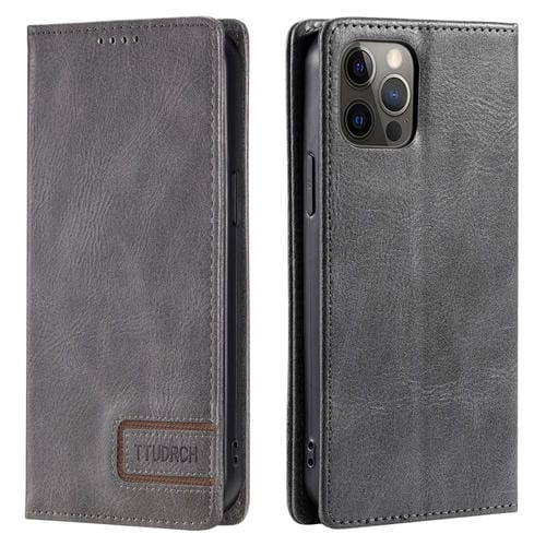 Funda de teléfono Ttudrch para iPhone 12 Pro Max Rfid Cuero Magnético Textura Retro (Gris)