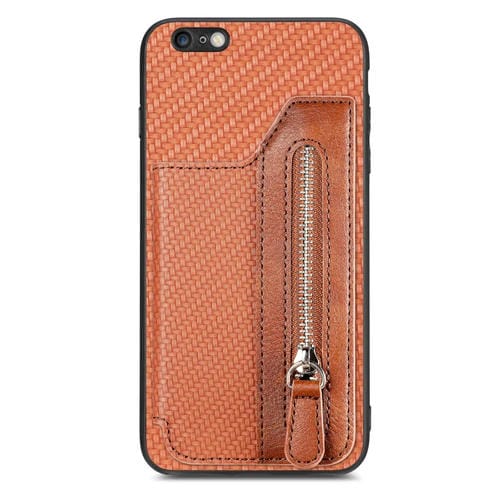Estuche para Teléfono iPhone 6 Plus 6S Plus Billetera Cremallera Horizontal Fibra de Carbono (Marrón)