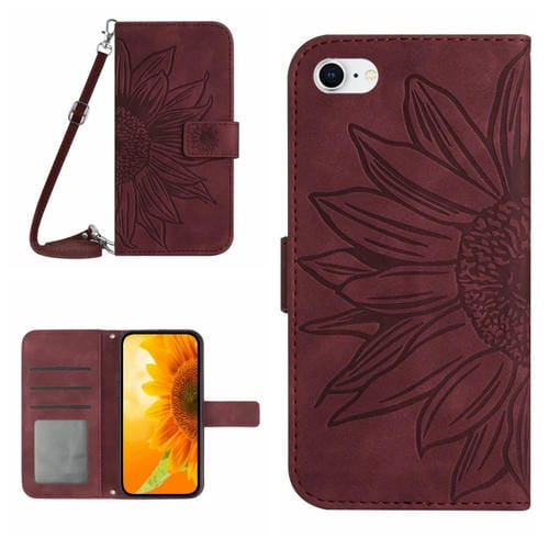 For iPhone 7/8 Skin Feel Sun Flower Pattern Flip Leather Phone Case Cover with Lanyard(Wine Red)