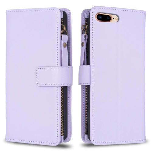 Funda de Cuero para iPhone 8 Plus y 7 Plus con 9 Ranuras para Tarjetas Monedero con Cremallera y Tapa (Púrpura Claro)