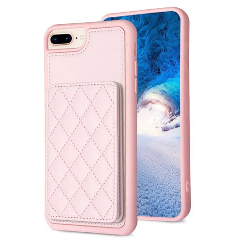 Funda para iPhone 8 Plus 7 Plus Bf25 Square Plaid Card Bag Holder Phone Case (Rosa)