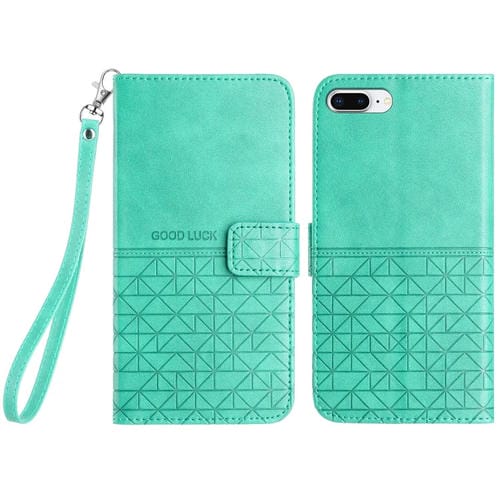 Funda de Cuero para iPhone 8 Plus/7 Plus con Textura Rómbica y Cordón (Verde)