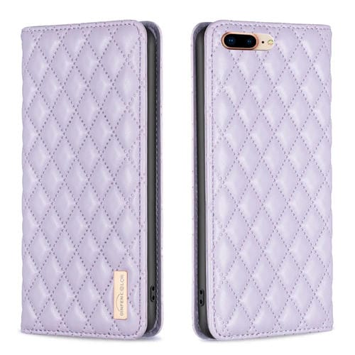 For iPhone 8 Plus / 7 Plus Diamond Lattice Magnetic Leather Flip Phone Case (Purple)