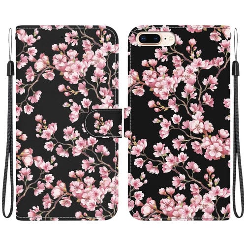Funda para Teléfono iPhone 8 Plus/7 Plus Cuero Dibujo Coloreado Textura de Cristal (Flor de Ciruelo)