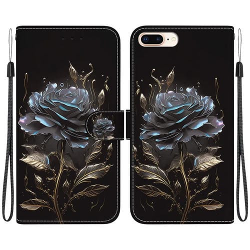 Funda para Teléfono iPhone 8 Plus/7 Plus Cuero con Dibujo Coloreado y Textura de Cristal (Rosa Negra)