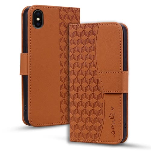 Funda de Cuero para Teléfono iPhone X / Xs con Hebilla de Diamante Empresarial y Cordón (Marrón)