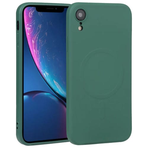 Estuche para Teléfono iPhone Xr Magsafe a Prueba de Golpes Cobertura Total Silicona Líquida (Verde Oscuro)