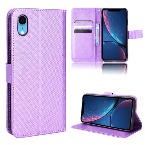 Funda de Cuero para iPhone Xr con Textura de Diamante (Púrpura)