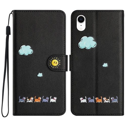 Funda de Cuero para Teléfono iPhone Xr con Gatos de Dibujos Animados (Negro)