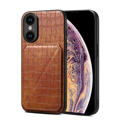 Funda Trasera iPhone Xs Max Piel de Cocodrilo de Imitación con Soporte (Marrón)
