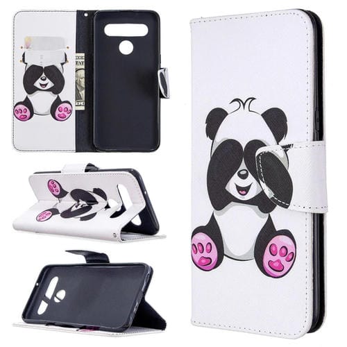 Estuche de Cuero para LG K61 con Tapa Horizontal, Soporte, Ranuras para Tarjetas y Billetera (Panda)