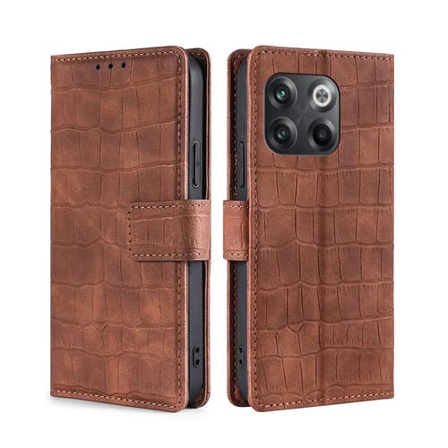 - 1x Funda de Cuero OnePlus 10T Skin Feel Cocodrilo con Cierre Magnético (Marrón)