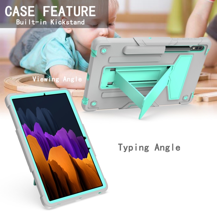 Soporte para Tablet Samsung Galaxy Tab S8 y Tab S7 T870 T875 PC y Silicona a Prueba de Golpes (Gris + Menta Verde)