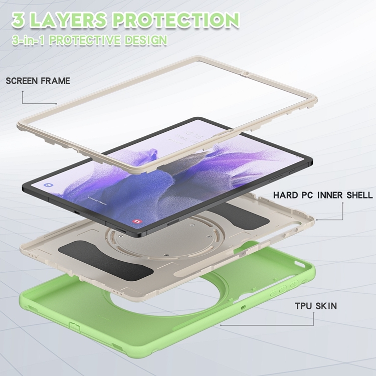 Funda protectora para Samsung Galaxy Tab S8 Plus / Tab S7 FE 12.4 Pulgadas T970 TPU + PC con rotación 360° y soporte (Matcha Green)
