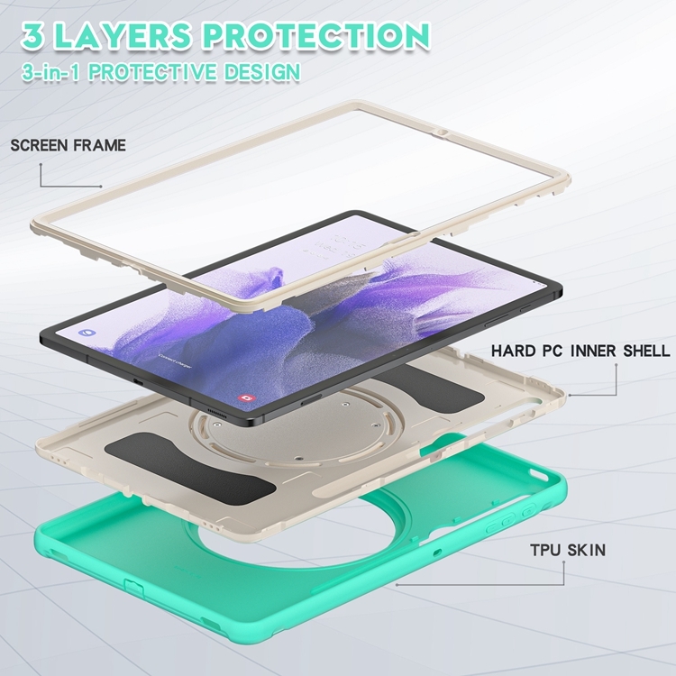 Funda Protectora para Samsung Galaxy Tab S8 Plus / Tab S7 FE 12.4 Pulgadas T970 TPU + PC con Soporte y Ranura de Bolígrafo (Menta Verde)