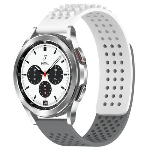 Correa de Reloj para Samsung Galaxy Watch 4 Classic 42mm 20mm Silicona Transpirable con Agujeros y Puntos 3D (Blanco + Gris)